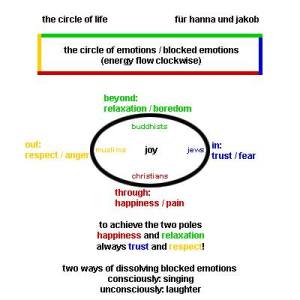 The easiest way to overcome the blocked flow of energy of fear, pain, anger and boredom is to either sing consciously or simply to laugh. Then trust, happiness, respect and relaxation arise.