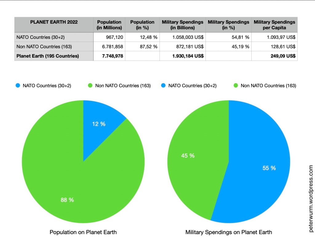 Die NATO besteht derzeit aus 30 Ländern in Nordamerika und Europa, plus Finnland und Schweden, die sich um eine Mitgliedschaft beworben haben. Diese 32 Länder repräsentieren 12 Prozent der Erdbevölkerung.