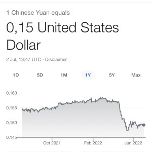 (Die chinesische Währung wurde massiv abgewertet, chinesische Produkte werden daher im Ausland günstiger, die Exporte steigen.)