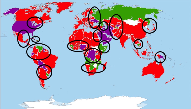 Where these countries collide, there are tremendous troubles arising. So we are facing the following critical areas on the globe (from North-West down to South and East):