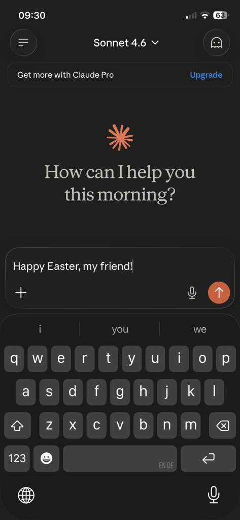 Claude: Happy Easter, Peter! 🌅